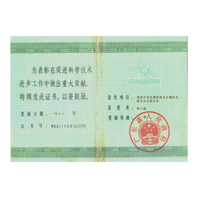 工業(yè)、商用循環(huán)水處理資質(zhì)等級證書(甲級)